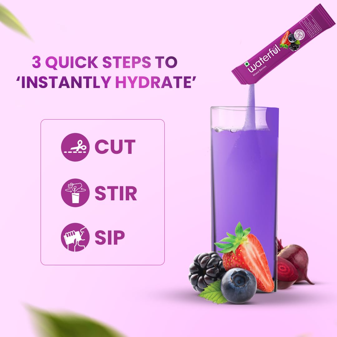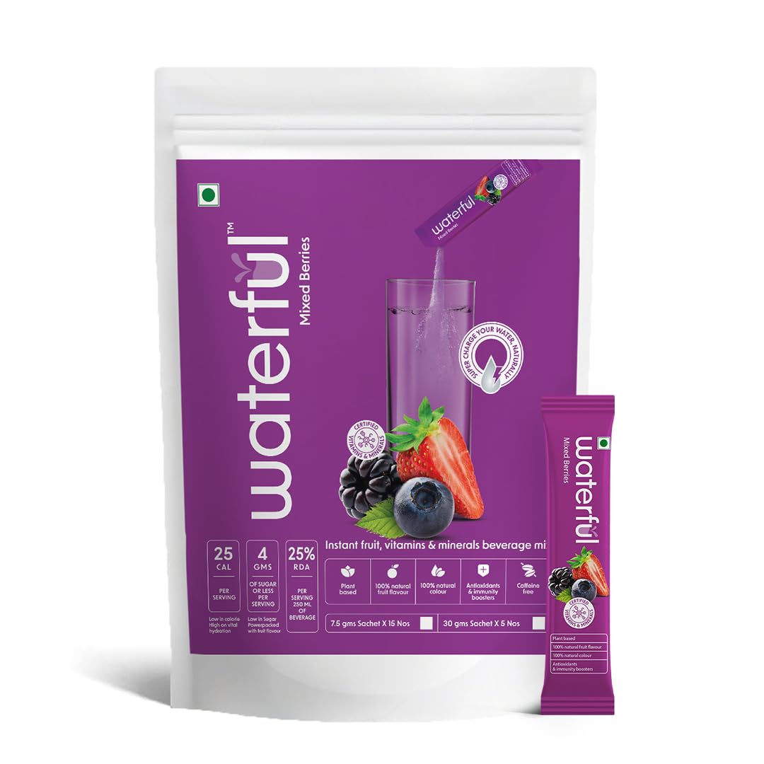 Waterful is a instant fruit drink mix that’s rich in 10+ essential vitamins & minerals to supercharge your water